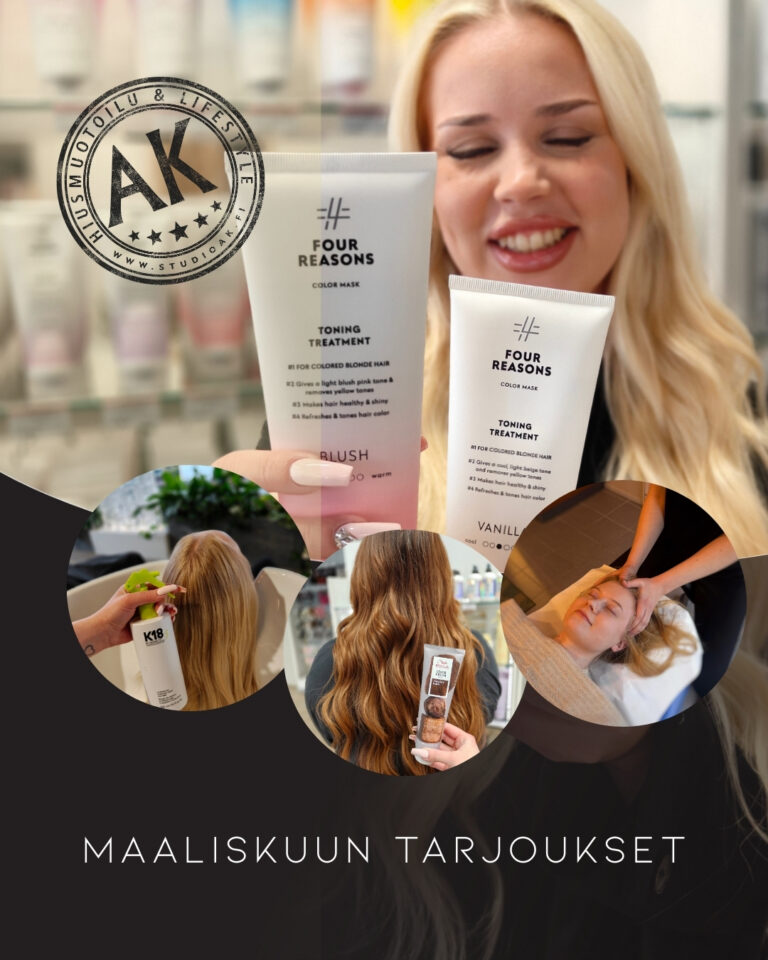 Huom! Etu ei koske Top Stylistien, Top Artistien tai Studio AK Koulun palveluita. Tuotealennus ei koske ghd-laitteita tai tarjoiluja.