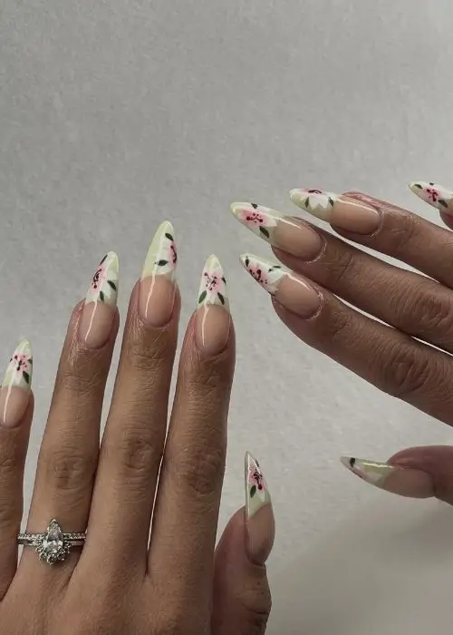 Kynsissä näkyy polka dot ja pastellisävyt