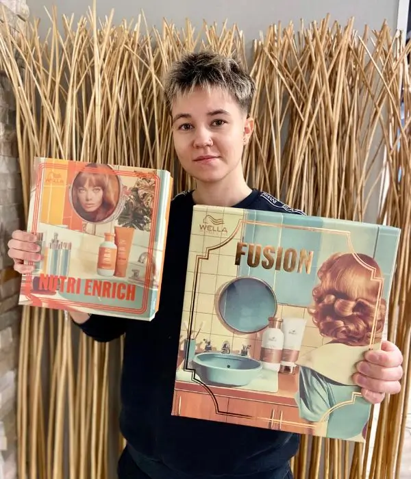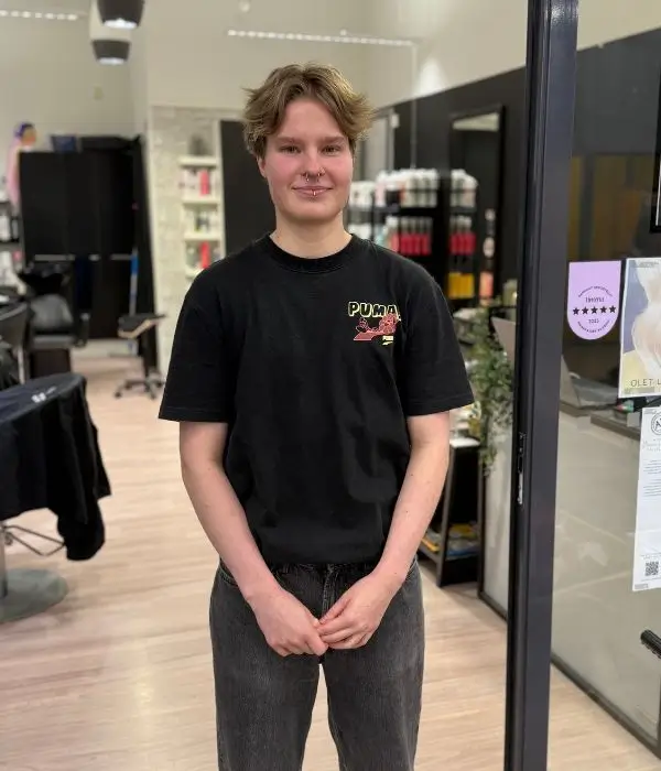 ”Oon tämmönen taiteilijasielu, joka tykkää kaikesta luovasta ja käsillä tekemisestä. Lempiasioita elämässä on sokeri, kissat ja maalaaminen. Tykkään tehdä kaikenlaisia töitä, mutta lemppareita on ehdottomasti kaikki erikoisempi, missä pääsee vähän käyttämään luovuutta,” kertoo itsestään Studio AK Seppälän parturi-kampaajaharjoittelija Leo (ensimmäinen kuva).
