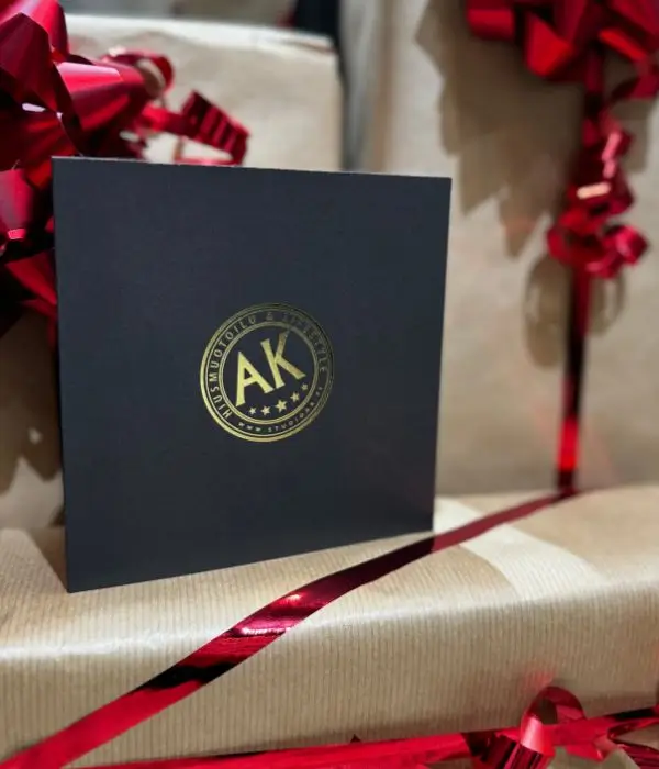 Lahjakortti on ostettavissa netistä tai liikkeestä, jolloin saat myös musta-kultaisen lahjarasian tai kultaisen kirjekuoren.