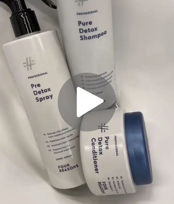 Four Reasons Pure Detox -tuotteet poistavat tehokkaasti näitä ongelmia aiheuttavia epäpuhtauksia ja metalleja. Sarjaan kuuluu Pure Detox Shampoo, Pure Detox Conditioner ja kampaamoissa käytettävä Pure Detox Spray.